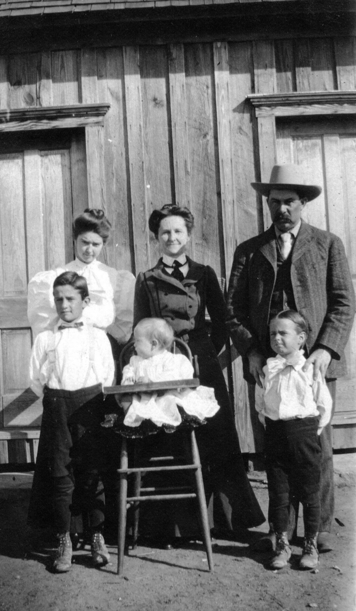 Dollie Daniel (left rear) with the Legg family with whom she boarded in Dickens County, Texas.