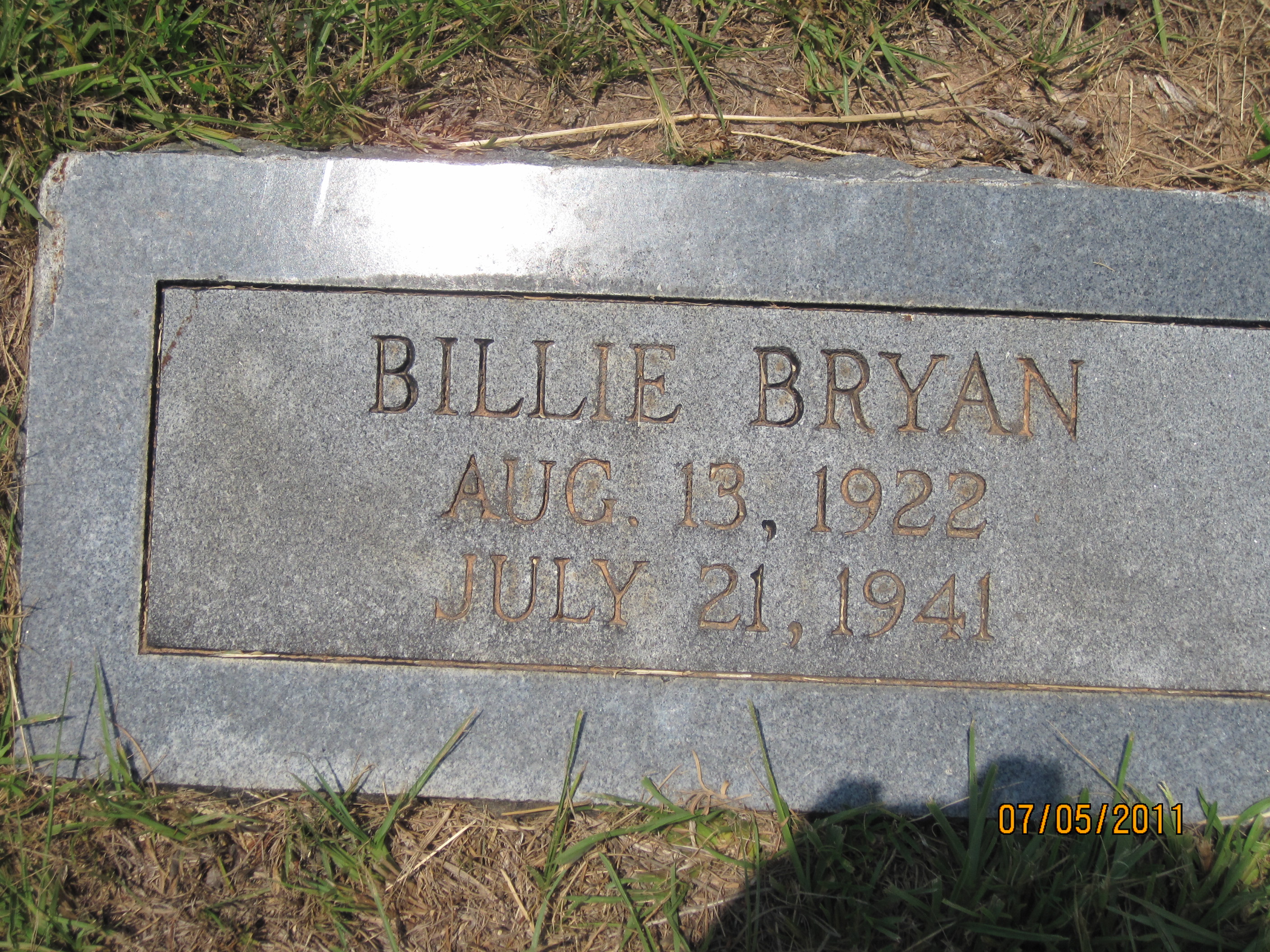 This is the tombstone of Billie Bryan Daniel in Holly Springs Cemetery.