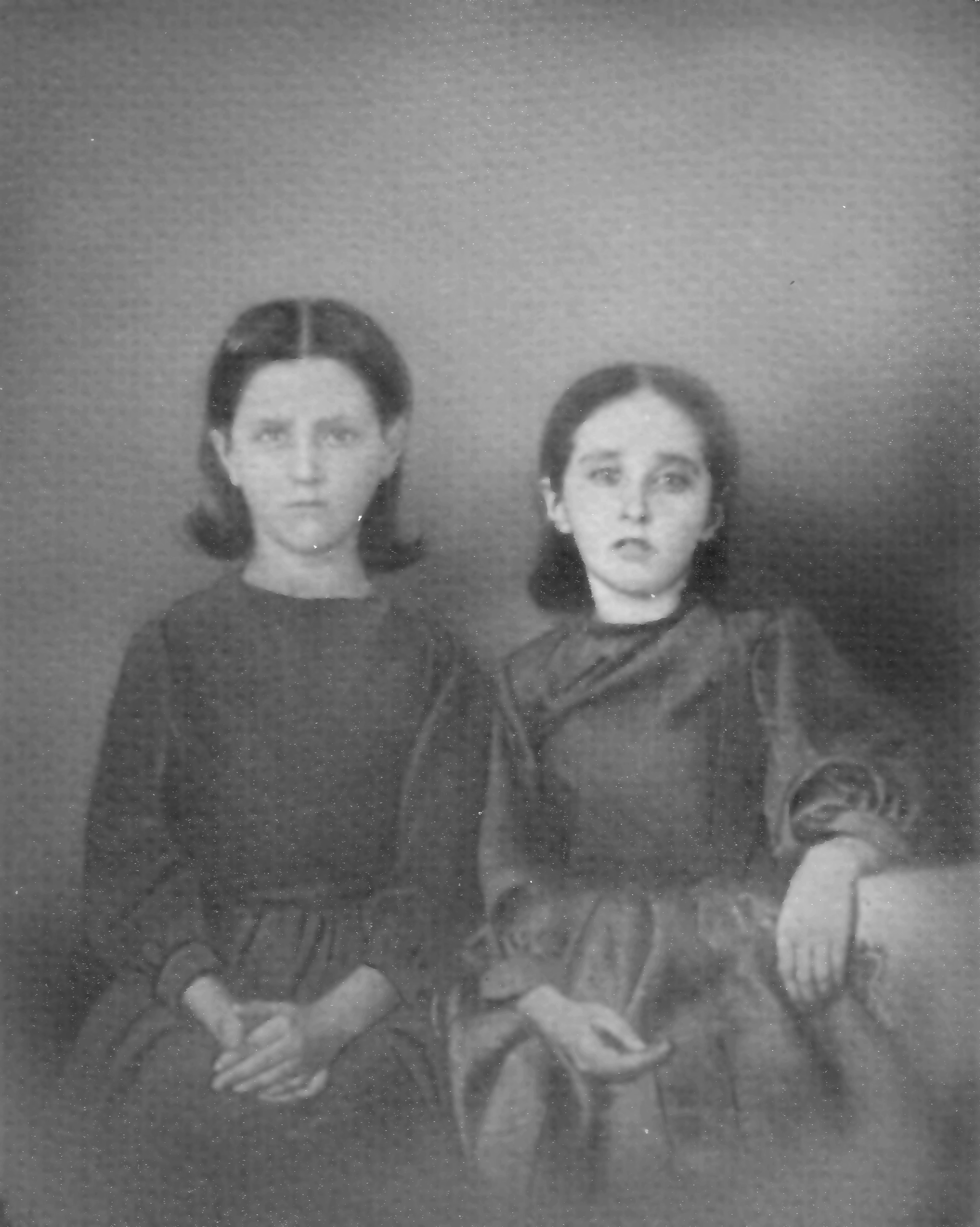 Robina and Victoria Daniel - Robina Salome (left) and Sarah Victoria (right) Daniel were the children of John Adams Daniel and Amanda Kirkpatrick Daniel. If this picture was taken in 1858, they would be 10 and 9 years of age. That seems consistent with the pictures. This picture was provided by Ernie Daffin.