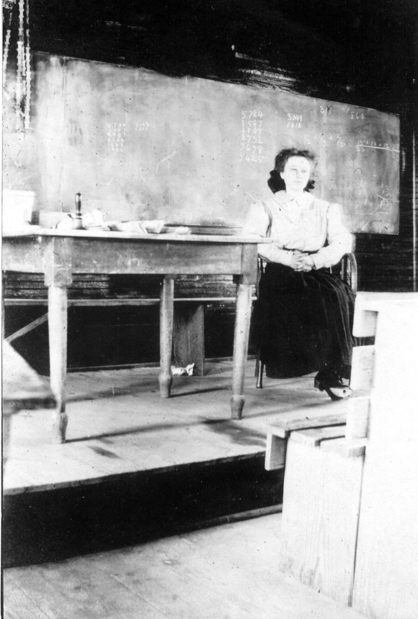 Miss Mayfield from Houston county, Texas is the teacher. Note on back: Not a good likeness of Miss Mayfield. Made in her schoolroom. She's from Houston Co.