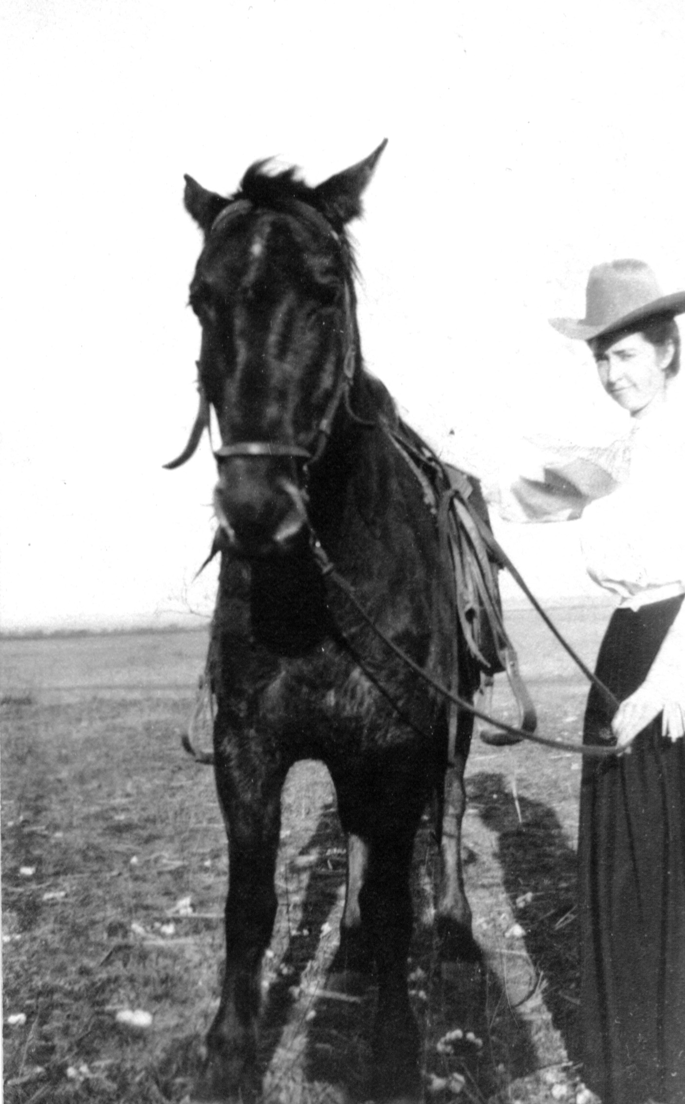 Dollie Daniel and a Horse in Dickens County, Texas